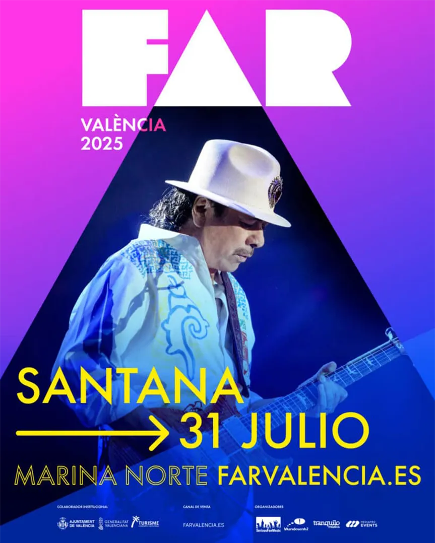 💸 Entradas: desde 35-40 € por concierto. Entradas para Santana: 70 € (pista general) y 120 € (pista delantera).